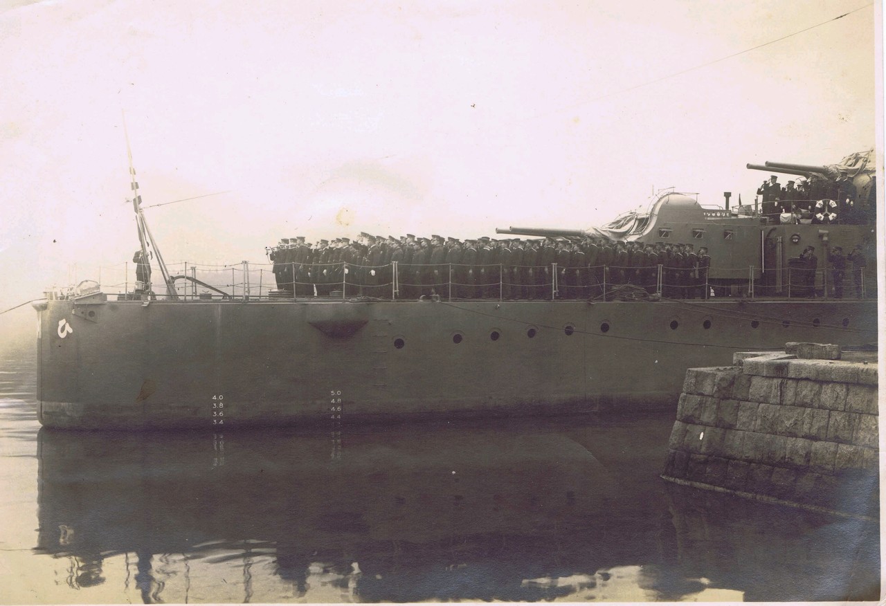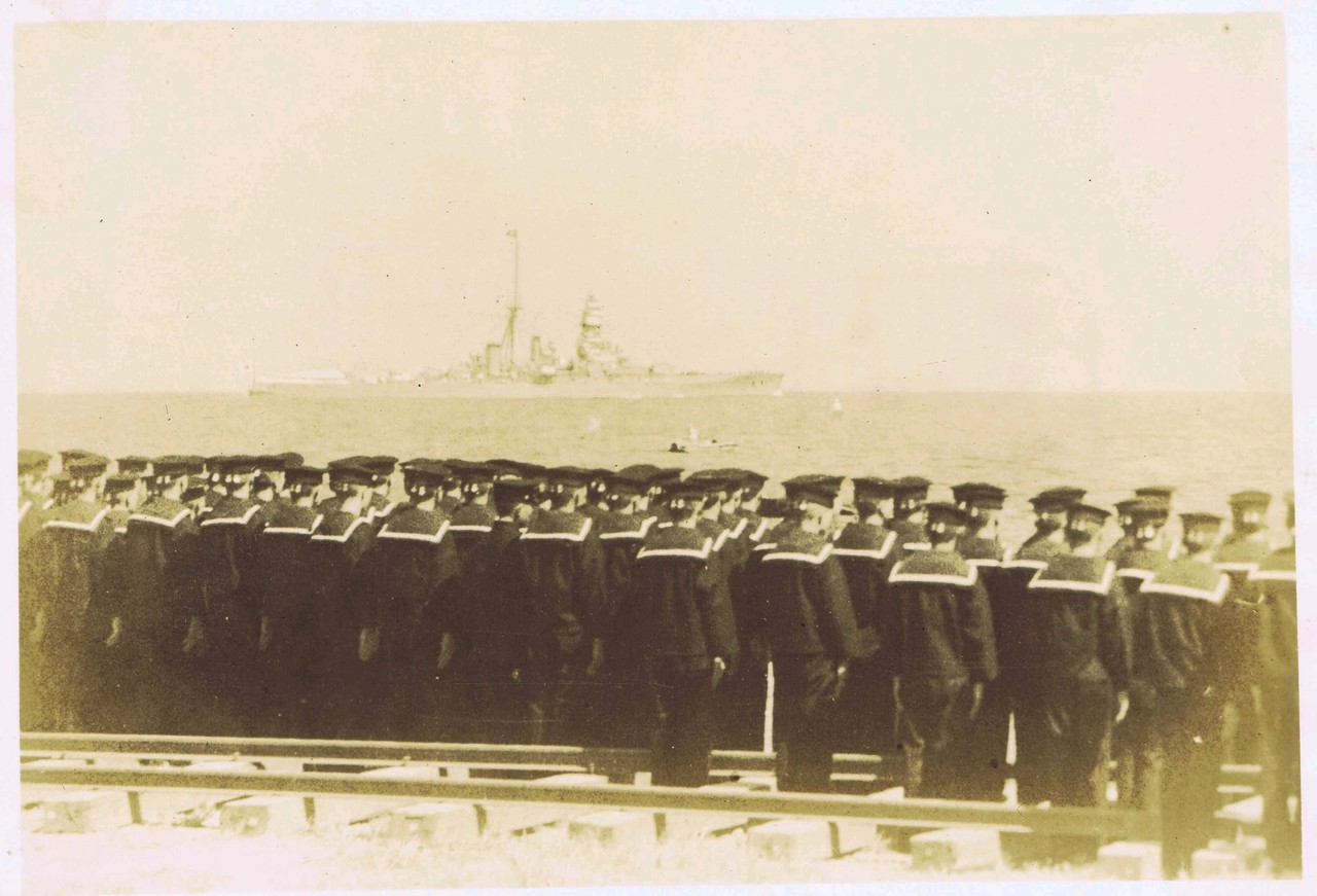 お召し艦「比叡」と水兵さん。写真の裏に11.9.25と日付と思われる数字あり。現像日?
