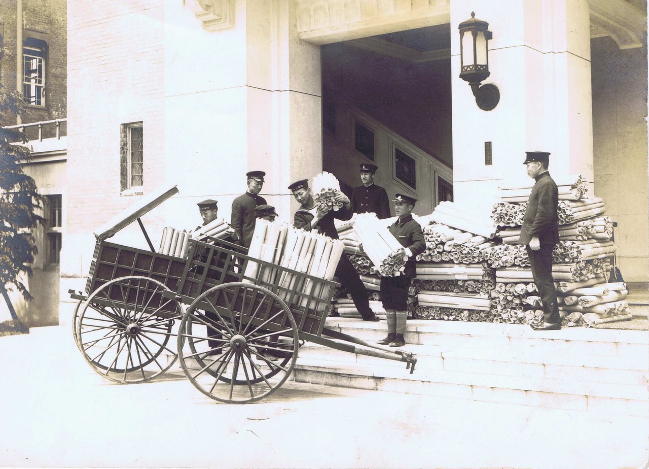「海軍記念日用ポスター発送風景」。すごい数なのと、むしろどんなポスターだったのかが気になる。